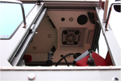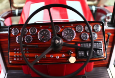 Nostalgisch und doch mit moderner Technik ist der Innenraum der Kabine ausgestattet. Die Seiten und Türen sind mit hochglanzpolierten Santos- Palisander- Füllungen vertäfelt. Das Armaturenbrett ist ebenso angefertigt und besitzt 13 Zeigerinstrumente für Drehzahl, Geschwindigkeit, Zeit, verschiedene Drücke und Temperaturen. Die Instrumente sind klassisch mit einem Chromring versehen, vom Armaturenbrett hervorstehend angebaut.
