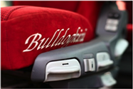 Der Fahrersitz, ein Cramer Maximo Evolution, bietet einen modernen Fahrkomfort. Auch der Beifahrersitz ist luftgefedert und beide Sitze sind mit rotem Leder überzogen. Am Kopfteil ist der Schlüter- Bär eingestickt. Der Innenraum ist mit 5 LED- Lampen optimal ausgeleuchtet.